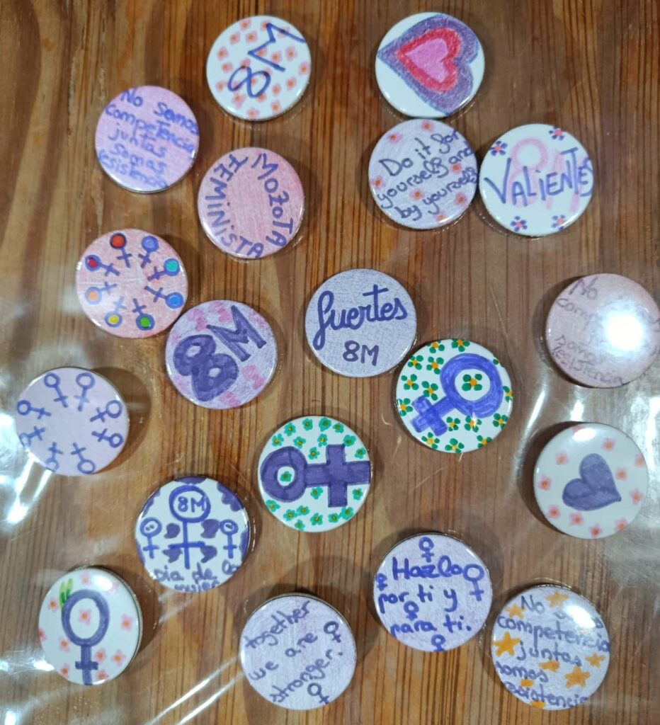 Comenzó el viernes 6 por la tarde con el «Taller de Chapas Feministas» en la Casa de Cultura, una actividad artística con mensajes de igualdad y simbología.