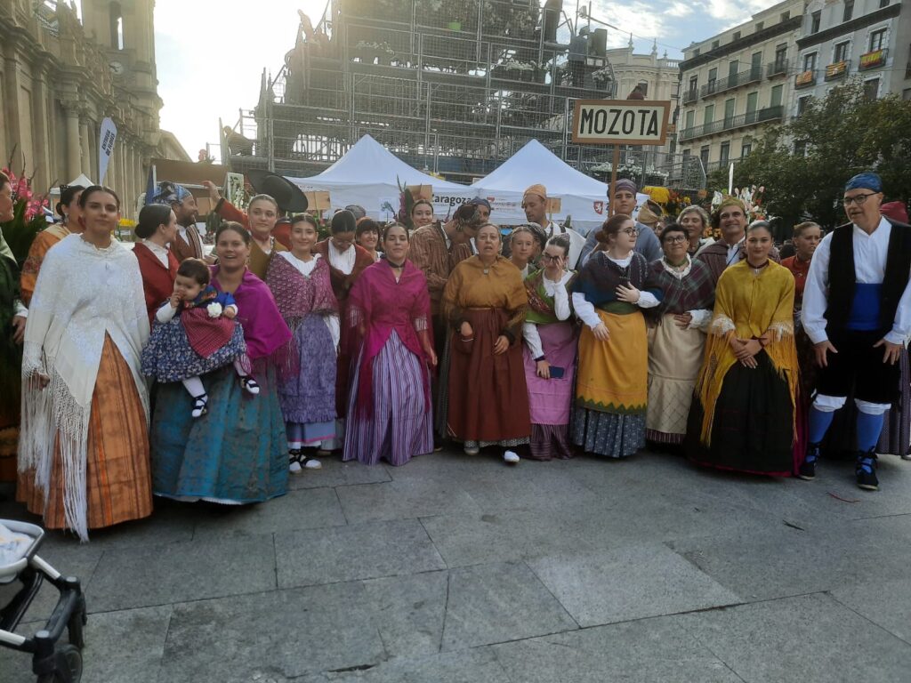 Mozota comenzó a participar en el recorrido floral hacia finales de los años ochenta —en torno a 1989, según recuerdan nuestros mayores—. Los mozotinos se suman a esta cita imprescindible de las Fiestas del Pilar; la Ofrenda de Flores, junto a las miles de personas que desfilan ante la Virgen.