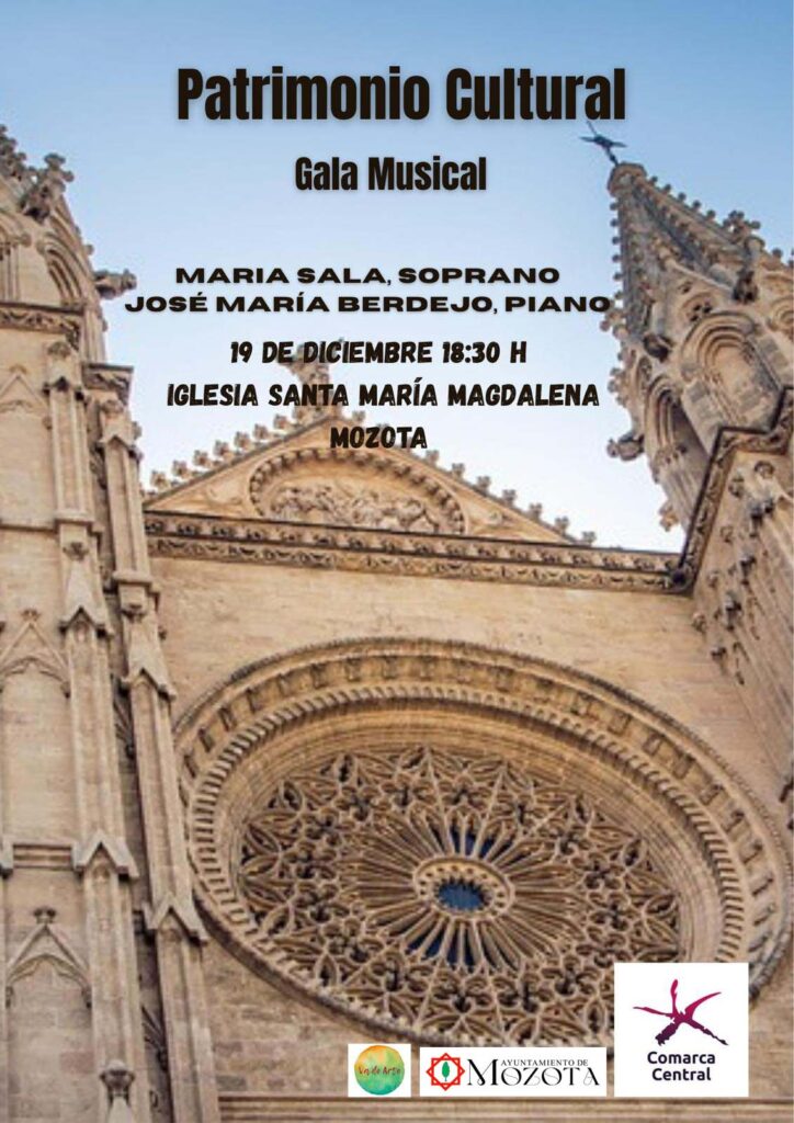 La música será protagonista el viernes 19 de diciembre, con una Gala Musical protagonizada por la soprano María Sala y el pianista José María Berdejo, que se celebrará en la Iglesia de Santa María Magdalena a las 18:30 horas. El evento, organizado por Va de Arte y Comarca Central, ofrece una cuidada propuesta artística, que nos acerca la música clásica al entorno rural.
